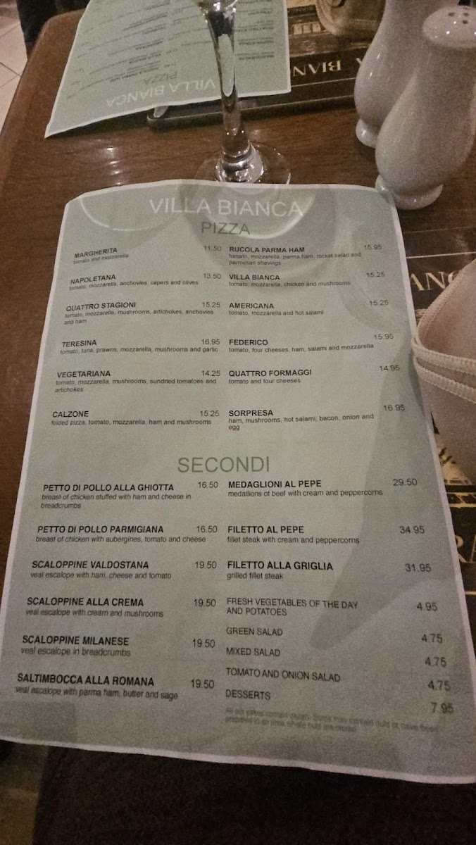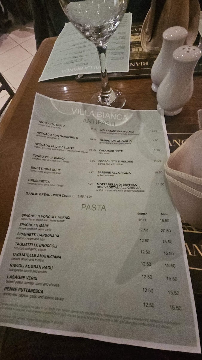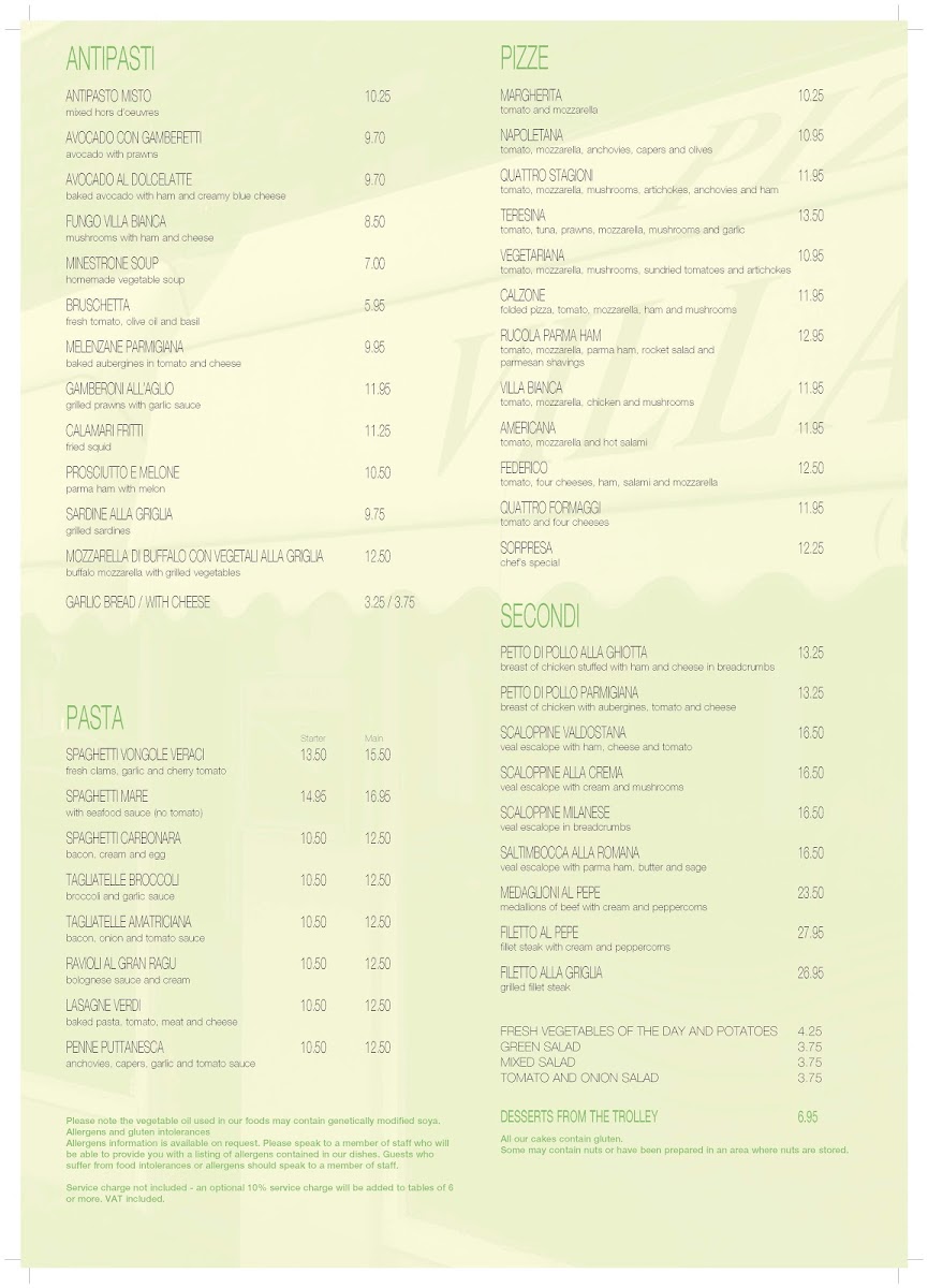 Villa Bianca Menu